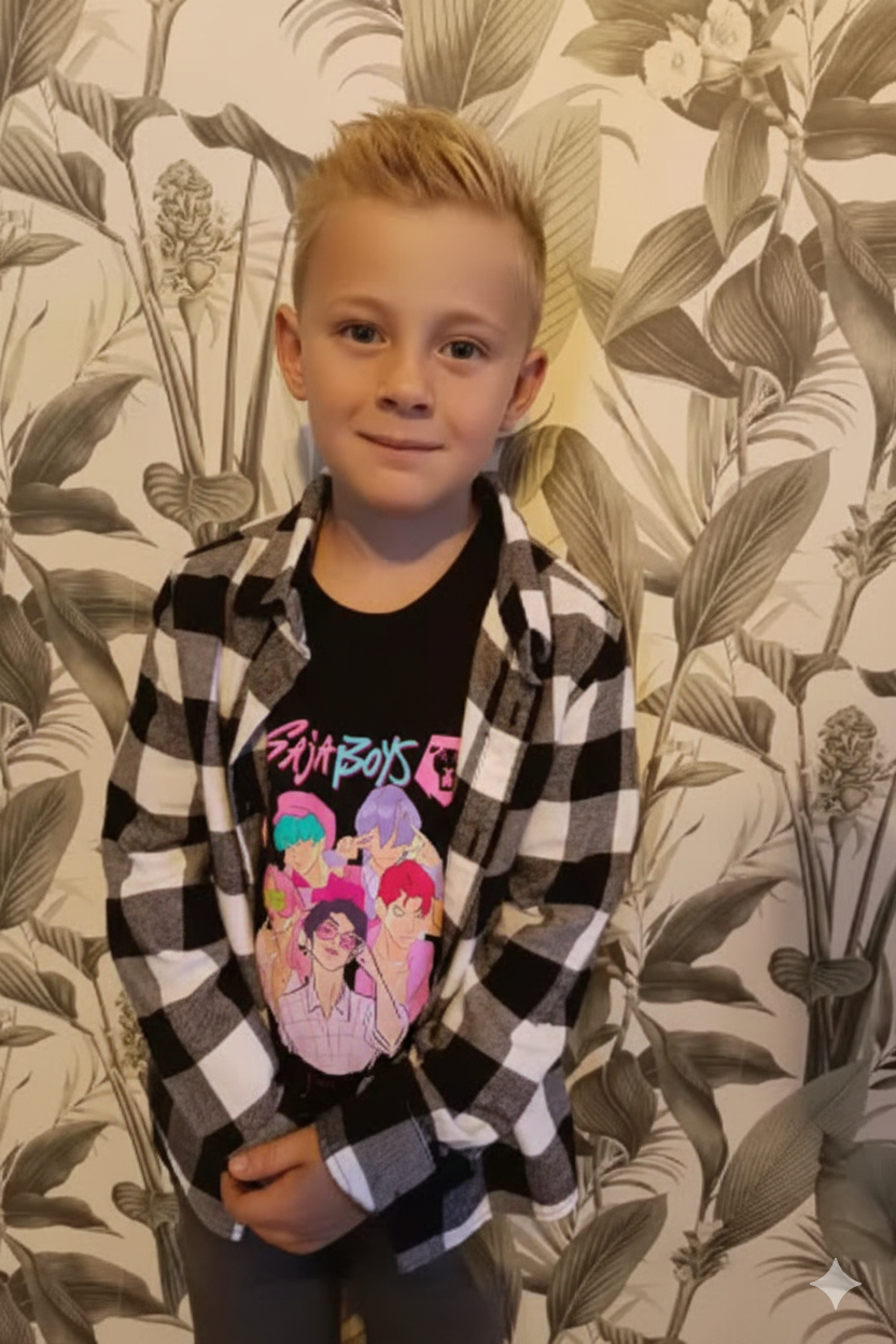 Mon fils est fan de Demon Hunters, il ne veut plus quitter son t-shirt 😅 La qualité est top et les couleurs ressortent super bien après plusieurs lavages.
